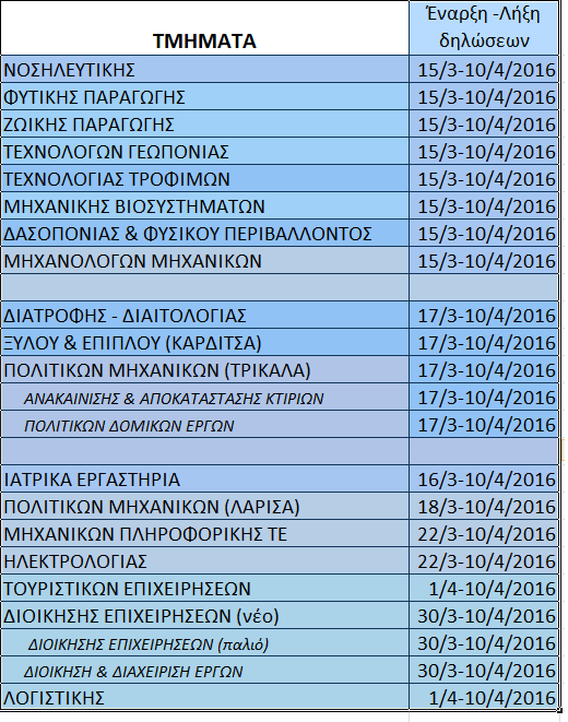 ΠΑΡΑΤΑΣΗ ΔΗΛΩΣΕΩΝ ΜΑΘΗΜΑΤΩΝ ΕΩΣ 10/4/2016